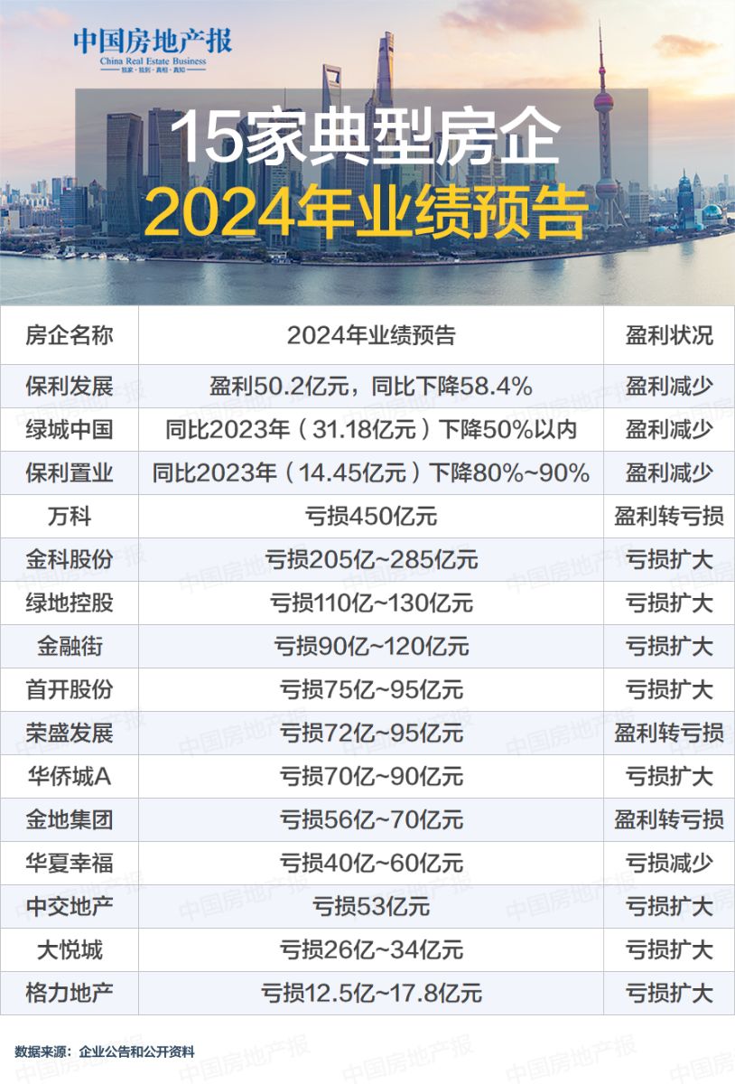 整体来看,2024年虽然仍有部分房企在盈利,但亏损的企业仍占多数,有的甚至亏损近百亿元。