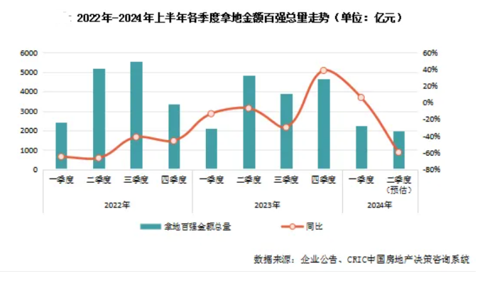 克而瑞监测显示,今年二季度房企投资百强门槛值、总量均同比出现较大跌幅。从单季度投资金额的变化来看,房企二季度拿地金额同比和环比分别下降60%和12%。