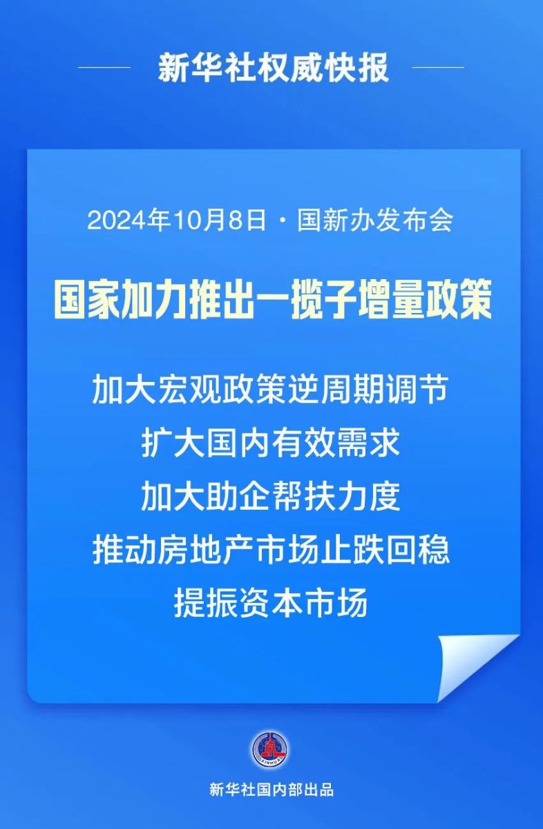 国务院新闻办公室于2024年10月8日上午10时举行新闻发布会,国家发展改革委主任郑栅洁和副主任刘苏社、赵辰昕、李春临、郑备介绍“系统落实一揽子增量政策 扎实推动经济向上结构向优、发展态势持续向好”有关情况,并答记者问。