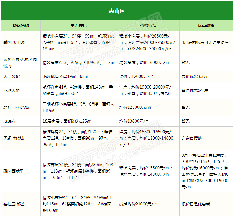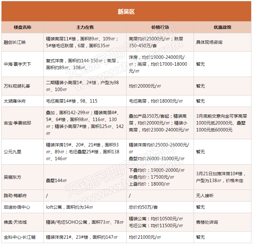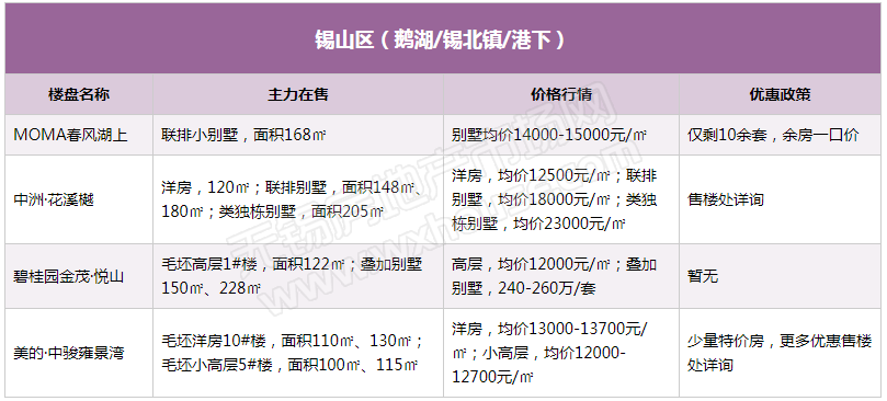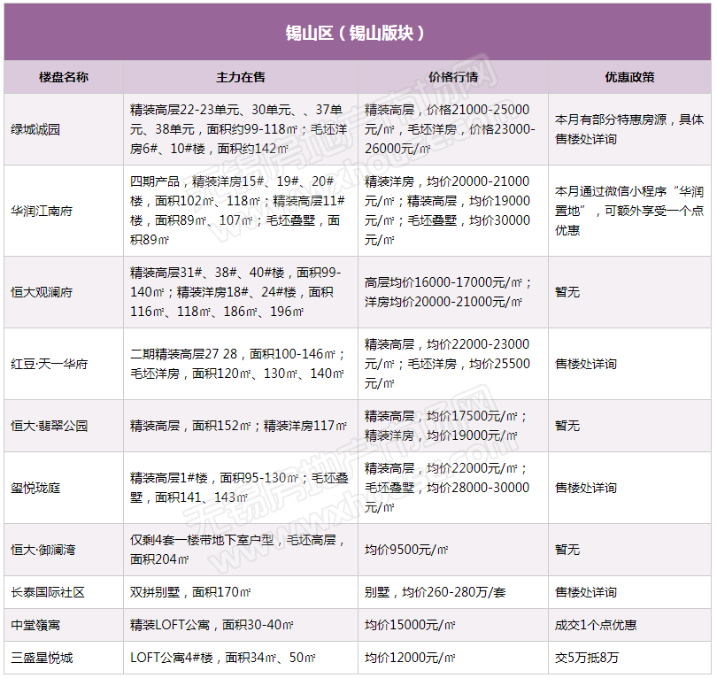 3月锡城主流在售楼盘最新报价及最全在售信息