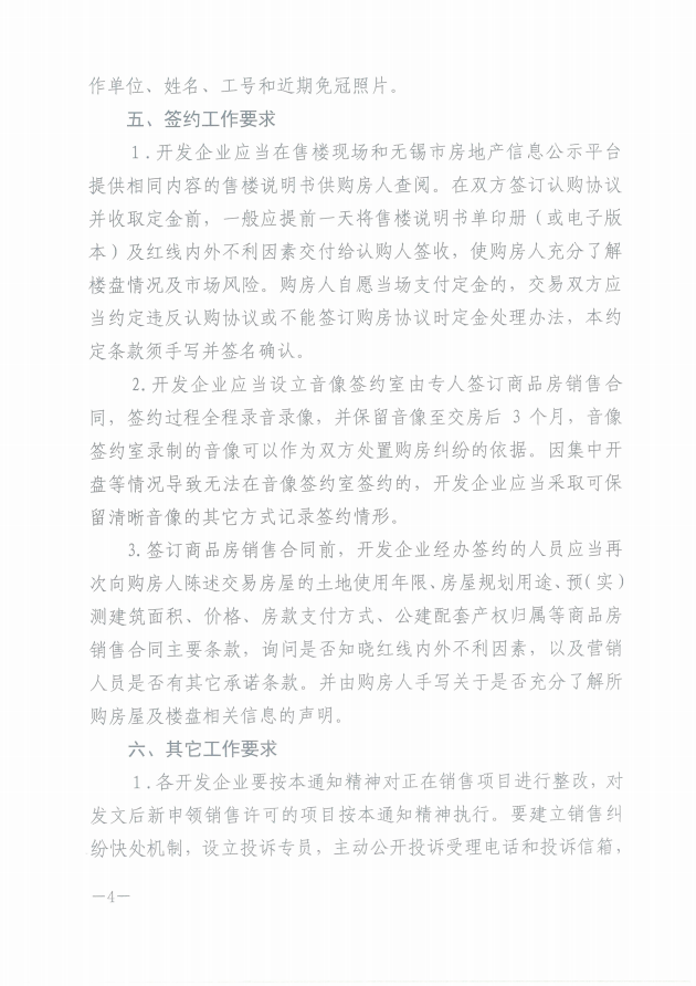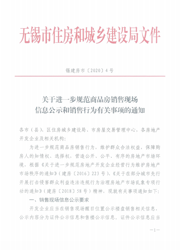 市场网首页 > 新闻中心 > 独家 > 正文 重磅!无锡住建规范商品房销售:不得作虚假承诺、签约全程录像 2020-06-05 13:21:53 无锡市住建局 关于进一步规范商品房销售现场信息公示和销售行为有关事项的通知 本文为无锡房地产市场网原创,谢绝各类形式的转载、刊登。未经许可,私自转载者,本站将追究其相关法律责任。 (责任编辑:张一男)