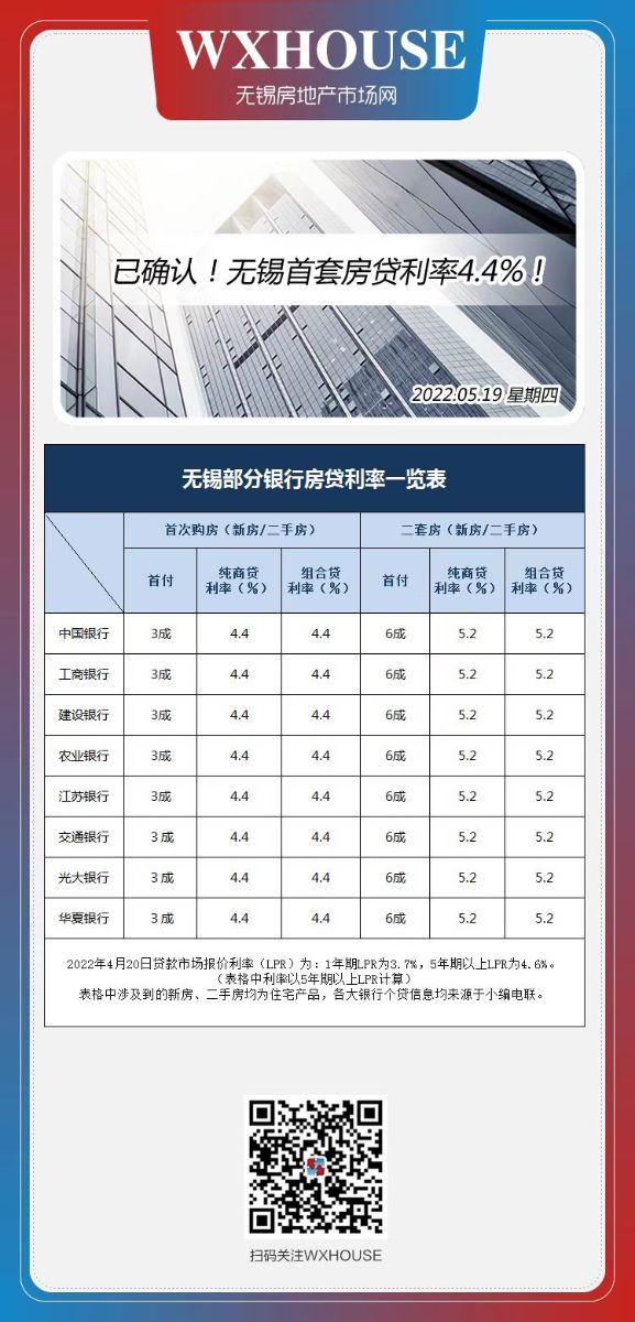 已确认!无锡首套房贷利率4.4%,二套5.2%