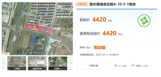 2020年,丽水南城一地块被自然人周xx竞得,成交价5800万元,