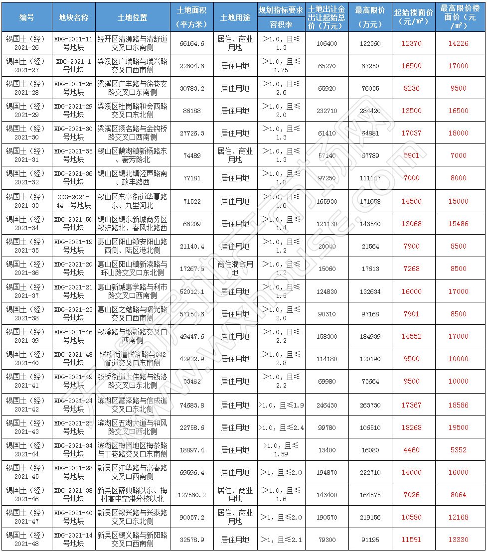 市场网首页 > 新闻中心 > 土地新闻 > 正文 无锡第二批次23幅地块集中挂牌!最高起拍价18268元/㎡ 2021-07-01 20:23:00 无锡房地产市场网 7月1日,无锡第二批集中挂牌地块正式公布。本次挂牌共计23幅地块,经开区1幅、滨湖区3幅、锡山区4幅、梁溪区4幅、新吴区4幅、惠山区7幅,总计超123万方;最高起拍楼面价18268元/㎡,23幅地块均设置最高限价,达到最高限价则摇号。 本次土拍将于8月2日开拍,具体地块信息如下↓ (责任编辑:陈柯)