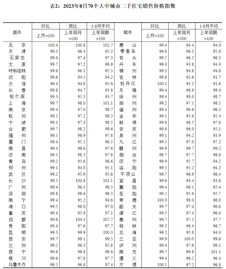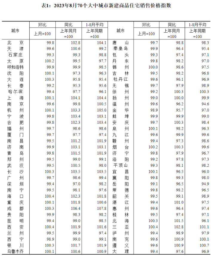 9月15日,国家统计局发布2023年8月份70个大中城市商品住宅销售价格变动情况。8月份,市场继续探底,降温态势延续。