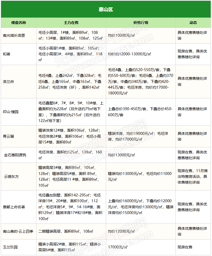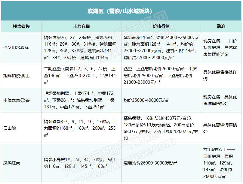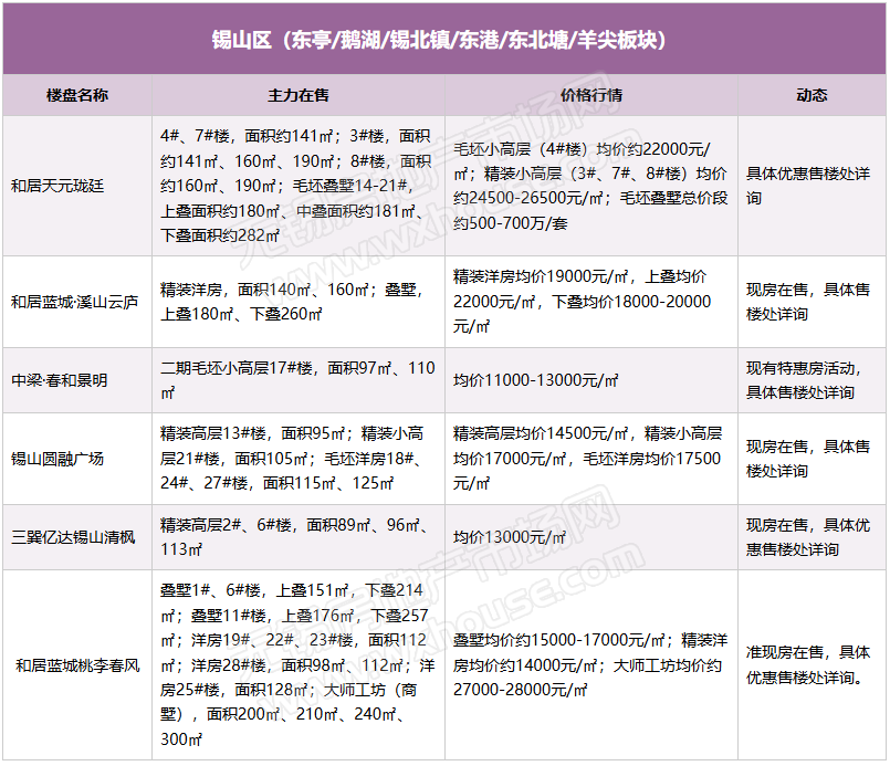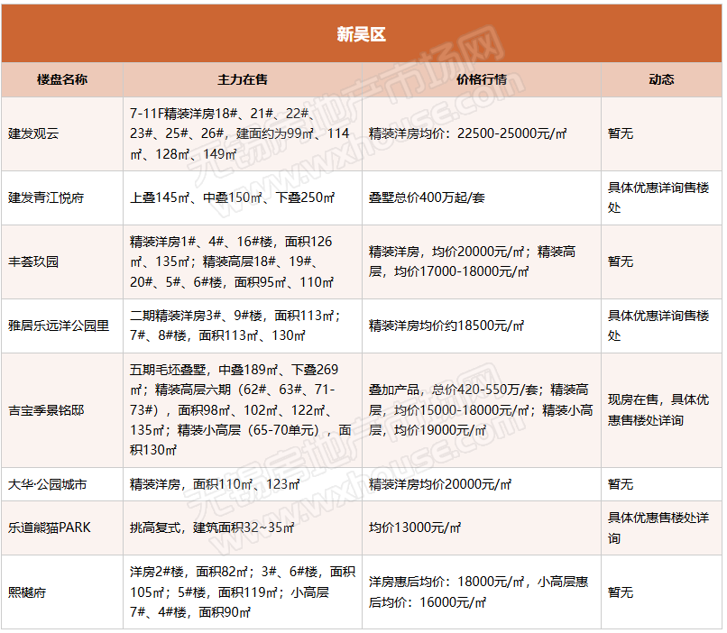 市场网首页 > 新闻中心 > 独家 > 正文 叮!最新百盘房价来了 2025-11-07 16:20:55 无锡房地产市场网 叮!11月最新百盘房价来了!“金九银十”落幕,“双十一”大促上线,部分楼盘释放购房优惠,特惠房源、车位券等促销上新,近期有置业计划的客户不妨多关注。(注:下表整理内容为锡城主流楼盘、主流物业,均为售楼处报价) 本文为无锡房地产市场网原创,谢绝各类形式的转载、刊登。未经许可,私自转载者,本站将追究其相关法律责任。 (责任编辑:陈柯)