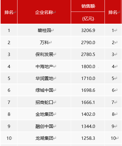 2022年1-8月中国房地产企业销售业绩排行榜