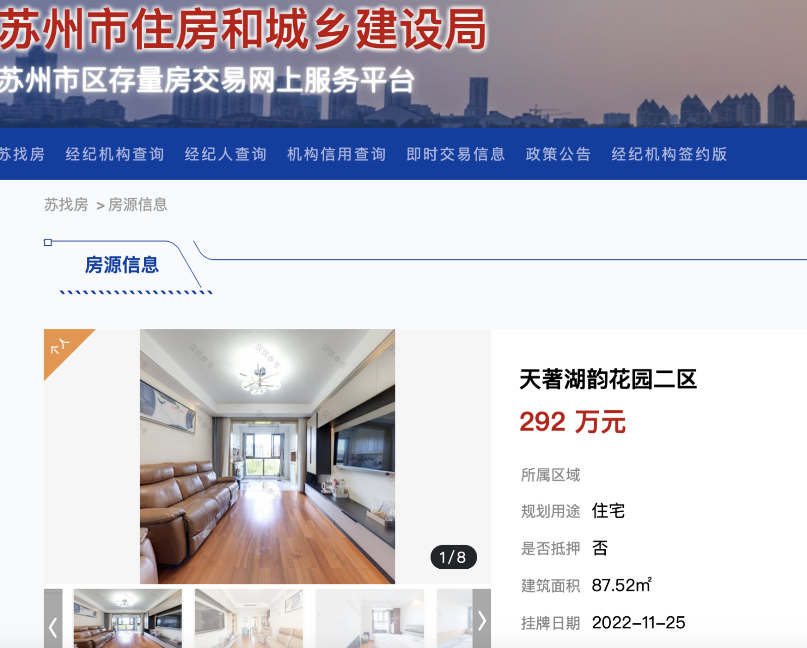据苏州市住建局官网介绍,11月10日,苏州市召开二手房自主交易平台“苏找房”上线启动会,副市长施嘉泓宣布平台正式启动上线。该平台为交易双方搭建起数字桥梁,市民只需通过平台实名注册登录,即可发布个人房源信息,与承购人自行达成成交意向。平台还推出房源验真功能,打造真实存在、真实产权、真实委托、真实价格、真实业主的房源体系。