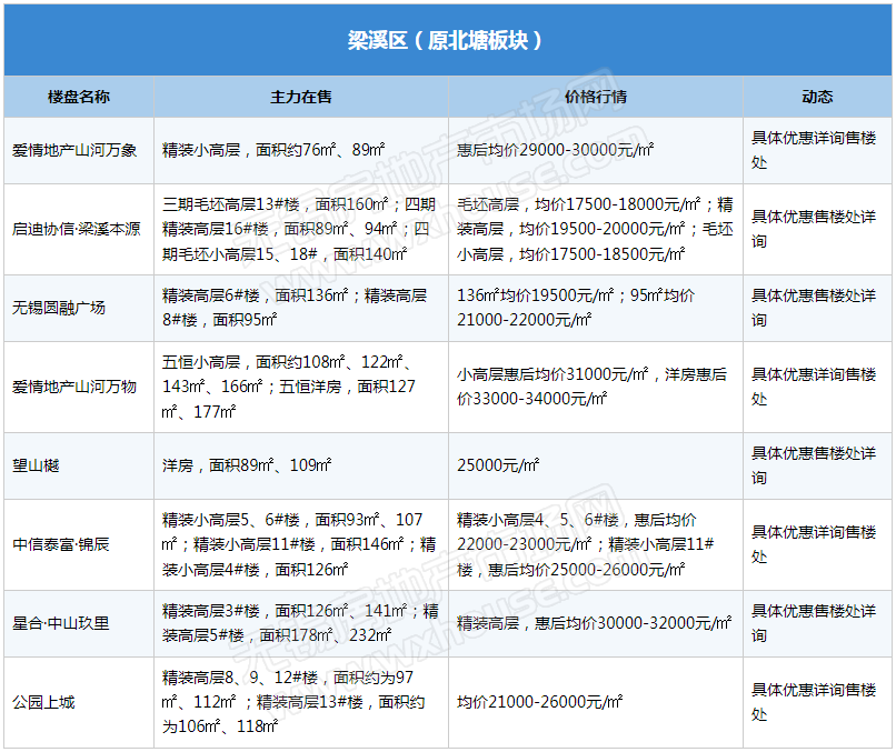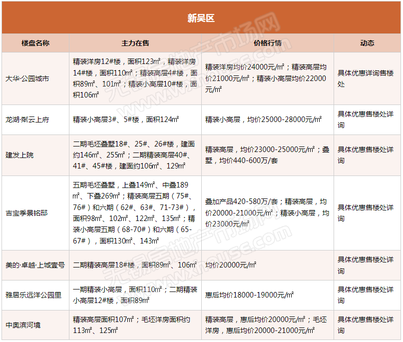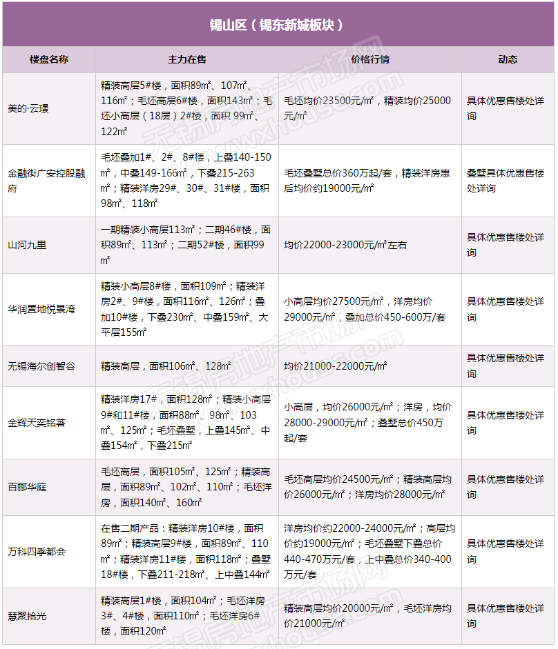 市场网首页 > 新闻中心 > 独家 > 正文 8月锡城主流在售楼盘最新报价及最全在售信息 2023-08-08 15:53:33 无锡房地产市场网 楼市进入8月,锡城在售主力楼盘多以持销为主,部分楼盘计划加推为即将到来的“金九”提前准备,如前湾国际、悦印风华、崇安澜庭壹号院等。折扣方面,目前在售主力楼盘优惠力度较小,仅少数楼盘推出特惠。(注:下表整理内容为锡城主流楼盘、主流物业,均为售楼处报价) 本文为无锡房地产市场网原创,谢绝各类形式的转载、刊登。未经许可,私自转载者,本站将追究其相关法律责任。 (责任编辑:陈柯)