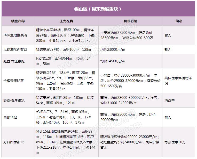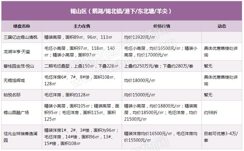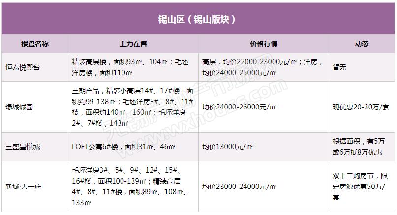 12月锡城主流在售楼盘最新报价及最全在售信息