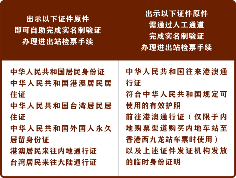 一定要记得携带身份证和港澳通行证(含签注,只有港澳通行证,没有有效签注,是不行的),出示以上证件原件即可自助完成实名制验证进出站检票手续。
