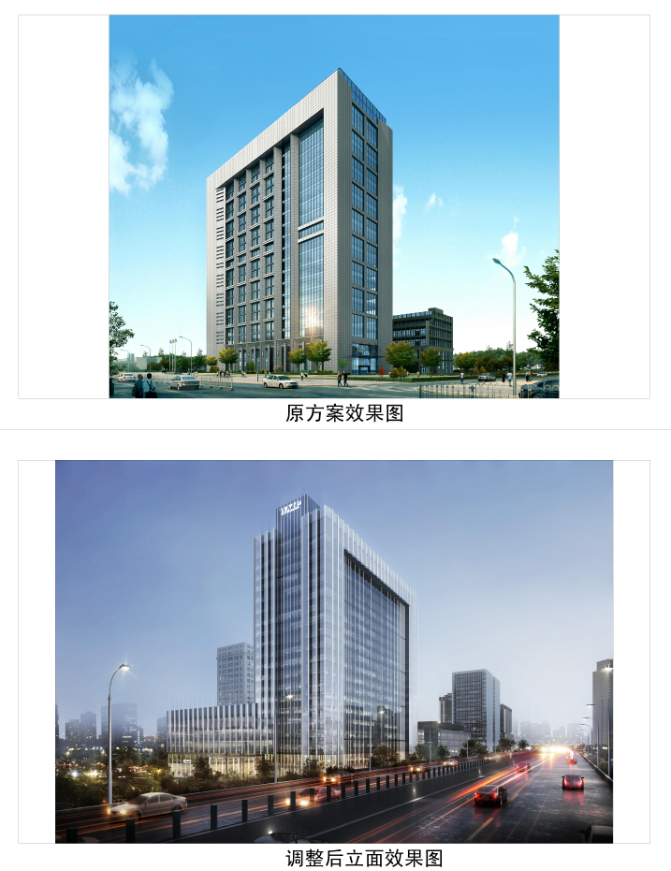 根据公示显示,项目办公楼宇整体立面造型优化,提升造型层次感,呼应锡东新城商务区整体协调性,现方案的玻璃幕墙更具现代感,建筑整体更显轻盈商务。