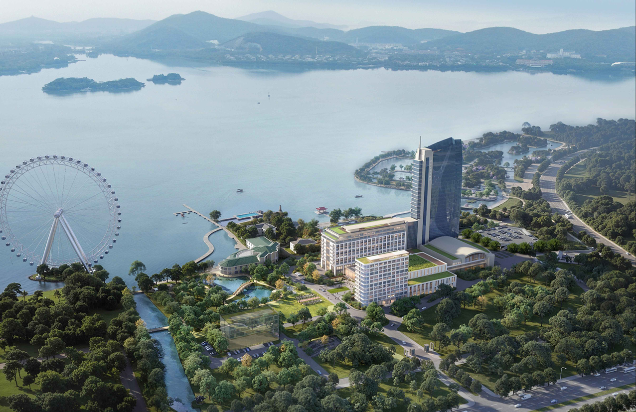 该项目位于环湖路以东、金城西路以南,建设单位为无锡湖滨饭店有限公司。项目可建设用地面积约76538.5㎡,用地性质为商业用地-旅馆用地。
