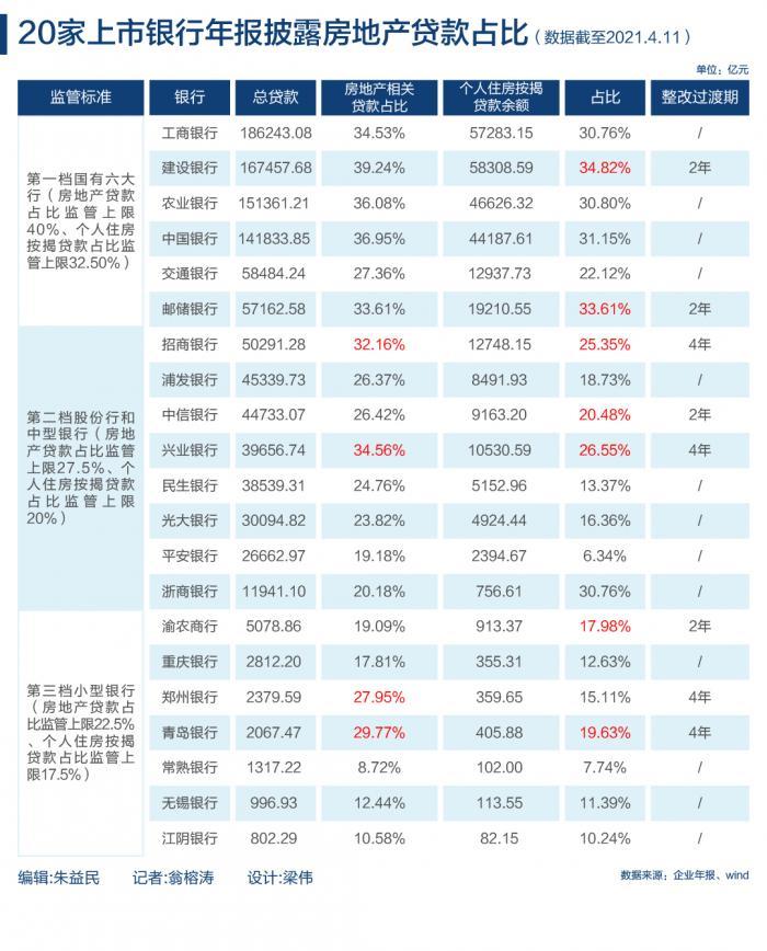 去年年底央行、银保监会颁布房地产贷款集中度制度,对银行的房贷占比作出“红线”指标,也因此,年报季中的上市银行是否“踩线”备受市场关注。
