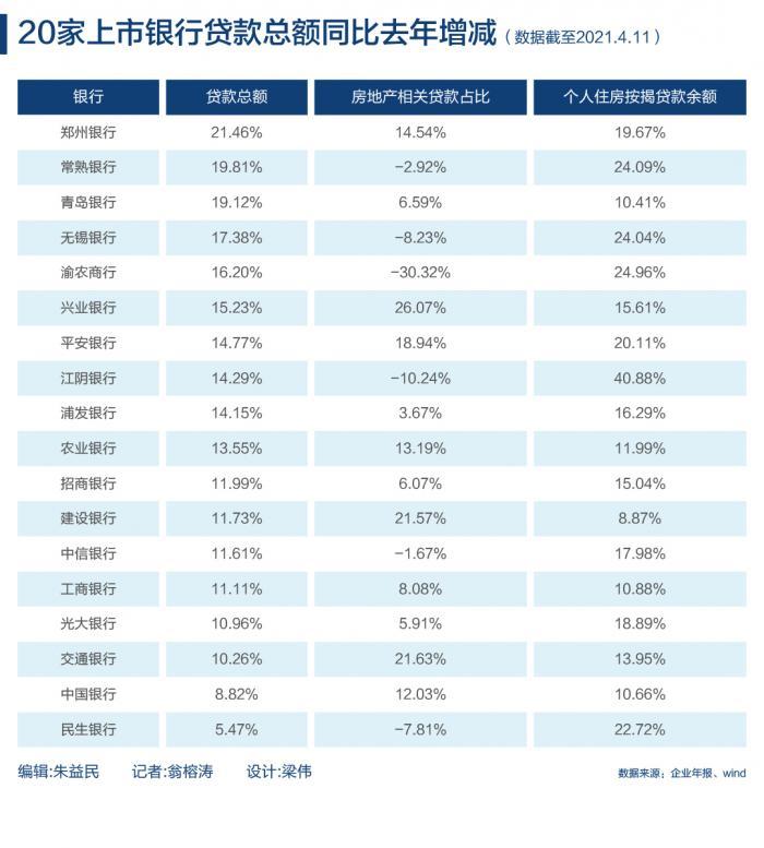 过去一年为了对冲疫情带来的影响,银行的贷款规模快速扩张,央行数据显示,2020年人民币贷款增加19.63万亿元,同比多增2.82万亿元。具体到各家商行而言,贷款总额大多保持10%以上的增速。