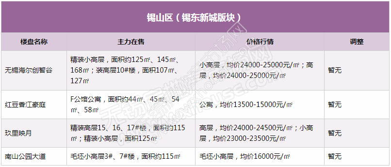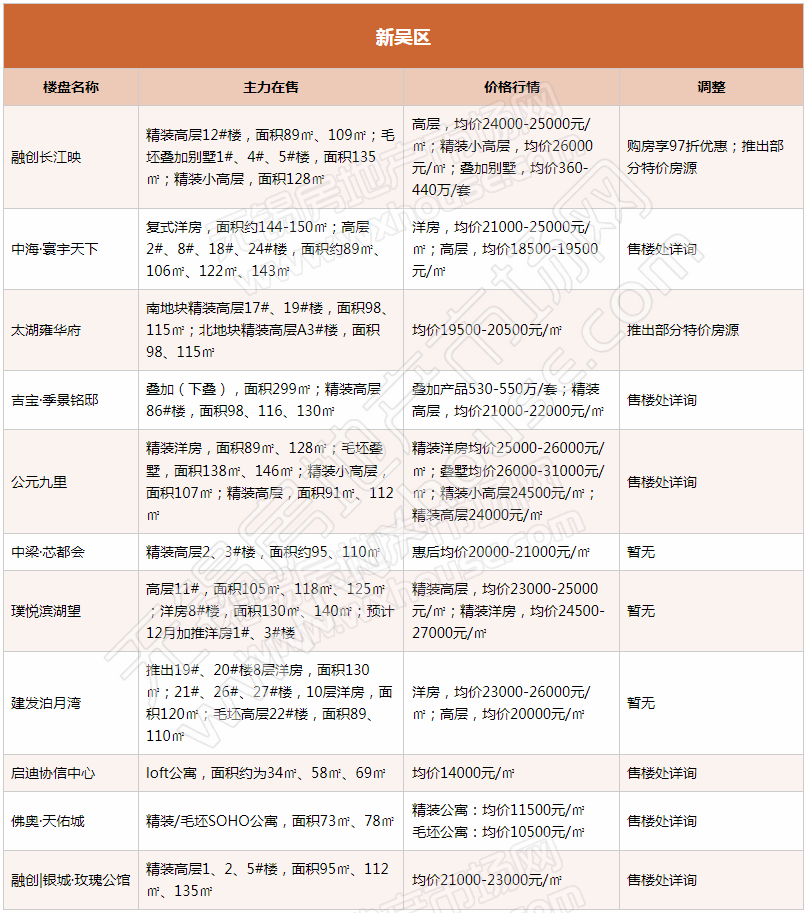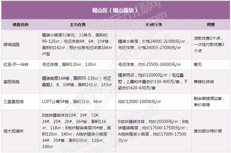 11月锡城主流在售楼盘最新报价及最全在售信息