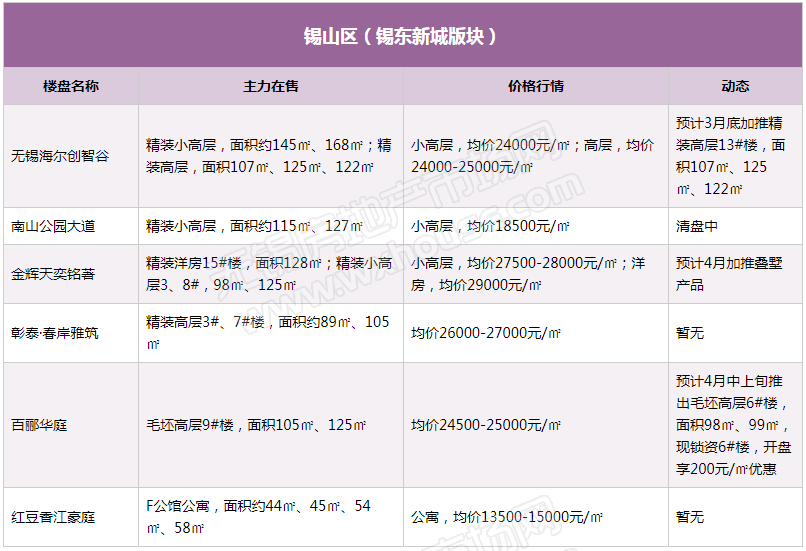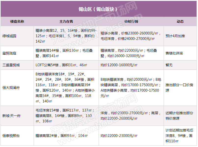 3月锡城主流在售楼盘最新报价及最全在售信息