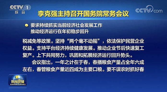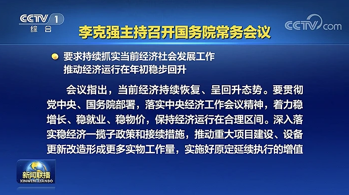 国常会:要求持续抓实当前经济社会发展工作,推动经济运行在年初稳步回升