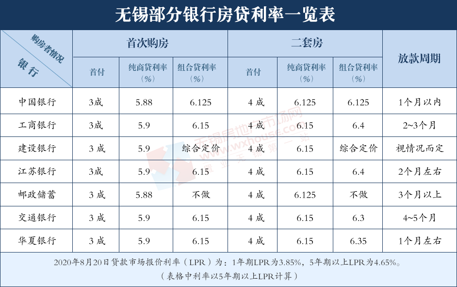 本月LPR公布,小编致电锡城7家主流银行对锡城个人住房贷款进行了解,各大银行均表示与上月相比,首付比例以及房贷利率方面几无变化。