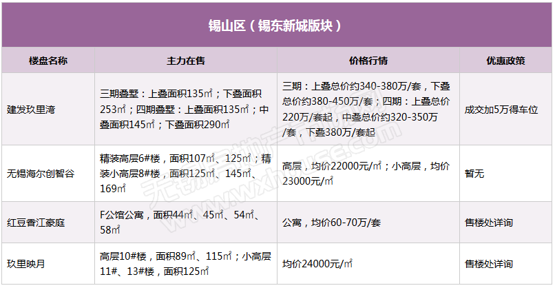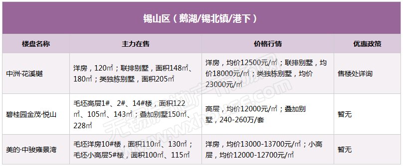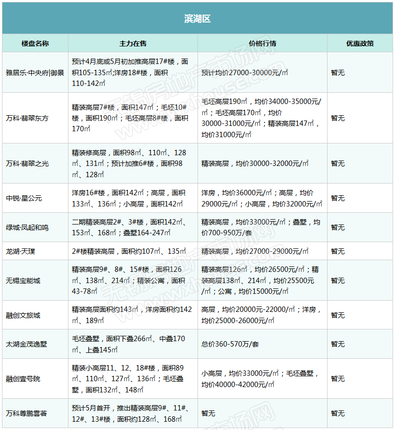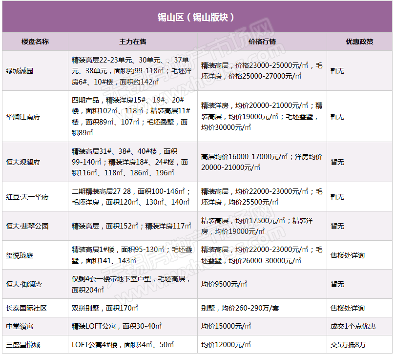 4月锡城主流在售楼盘最新报价及最全在售信息