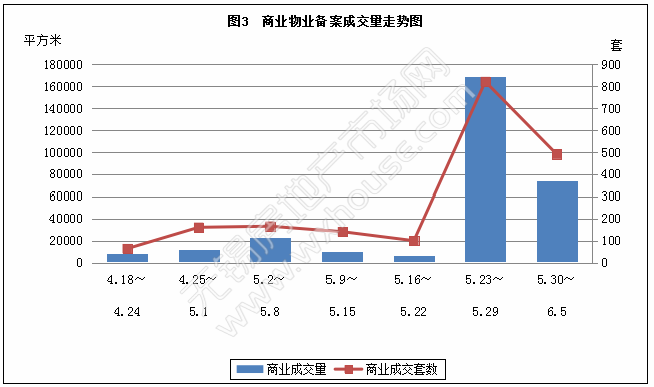 6月伊始,本周楼市成交较上周小幅回落。全市商品房一周备案成交量为15.36万平方米,环比减幅45.77%;备案成交1409套, 环比减少738套。在本周商品房备案成交中,朗诗新郡以0.31万平方米,20套,位居住宅备案成交排行榜榜首。商业成交方面,明发商业广场以6.28万平方米,357套的成交量位列榜首。卡摩尔国际汽车生活广场则位列办公排行榜榜首,成交面积1.07万平方米,275套。从一线市场反馈来看,在各项利好条件激励下各大售楼处来访客户有明显提升,市场持续回暖,6月楼市值得期待。