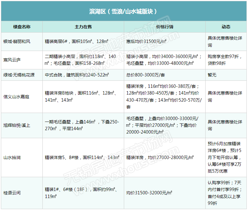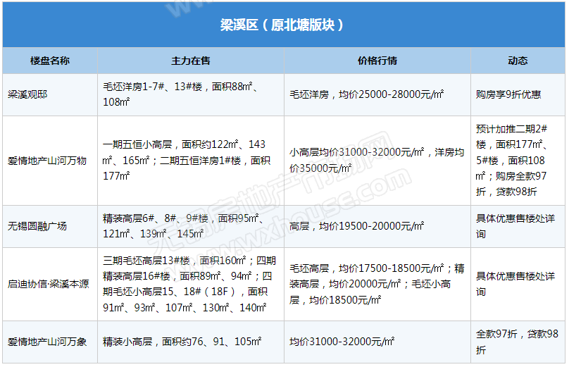 五月,楼市松绑信号频发,市场整体情绪逐步上扬,政策加持+企业积极营销,楼市预期向好。据小编了解,锡城不少楼盘响应“红五月”促销活动,推出特惠房源,楼市成交局部小幅回温。但对于后续供应计划,大部分楼盘还是持“保守”态度,仅山水拾涧、安兰诺雅、山河万物等少数楼盘表示近期有加推计划。静待政策助推下的“红五”表现。(注:下表整理内容为锡城主流楼盘、主流物业,均为售楼处报价)