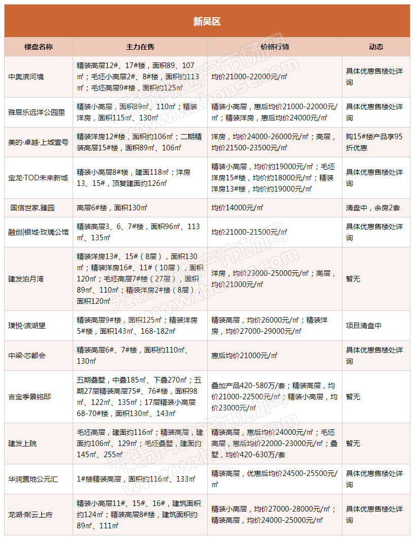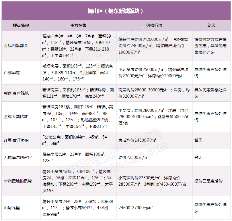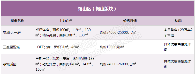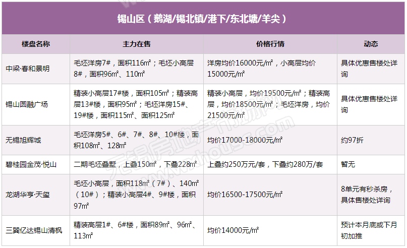 5月锡城主流在售楼盘最新报价及最全在售信息