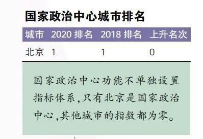 社科院的报告指出,国家政治中心功能不单独设置指标体系,只有北京是国家政治中心,其他城市的指数都为零。