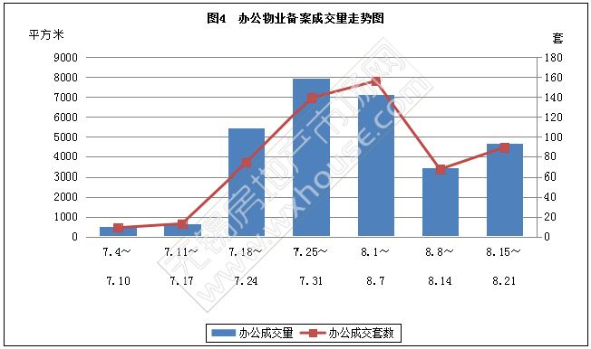 本周办公物业备案成交量和套数分析