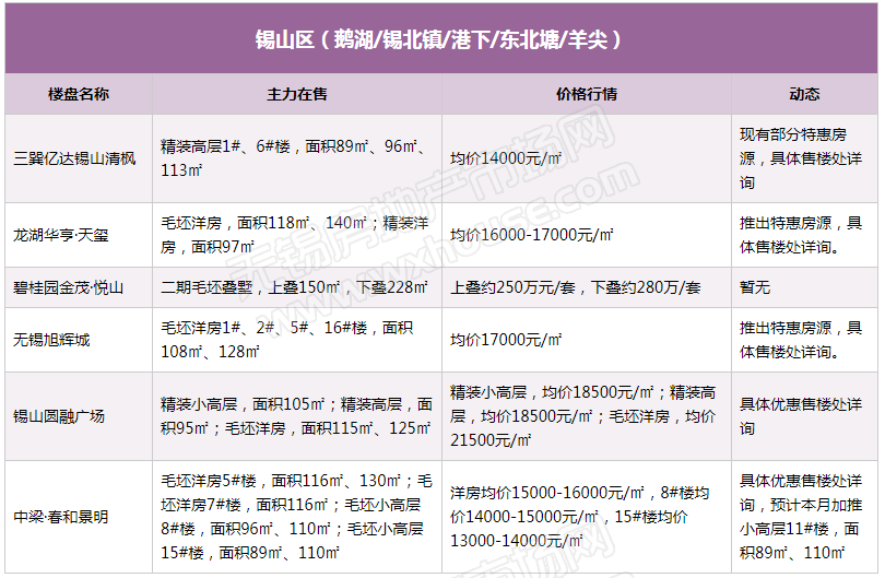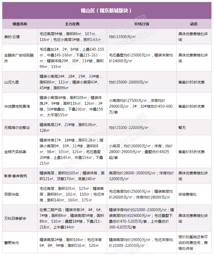 10月锡城主流在售楼盘最新报价及最全在售信息