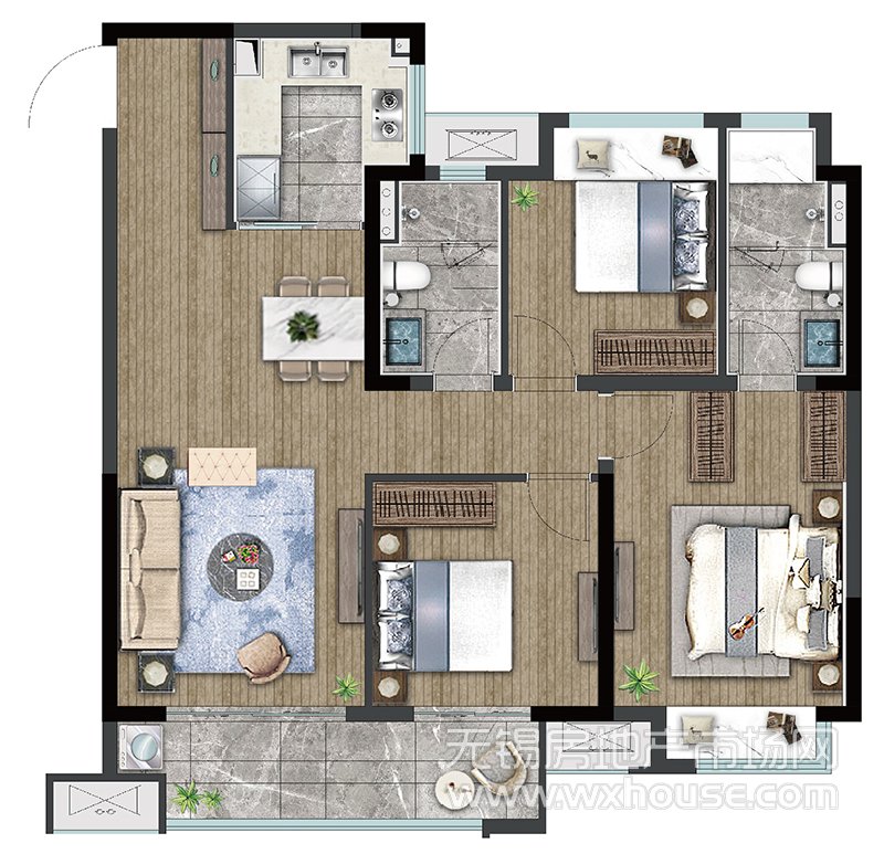 其实无锡也有一些不错的,能随着主人的需求“长大”的户型,比如上文提到的融创西羲里116平户型就可以进行大幅空间改造。