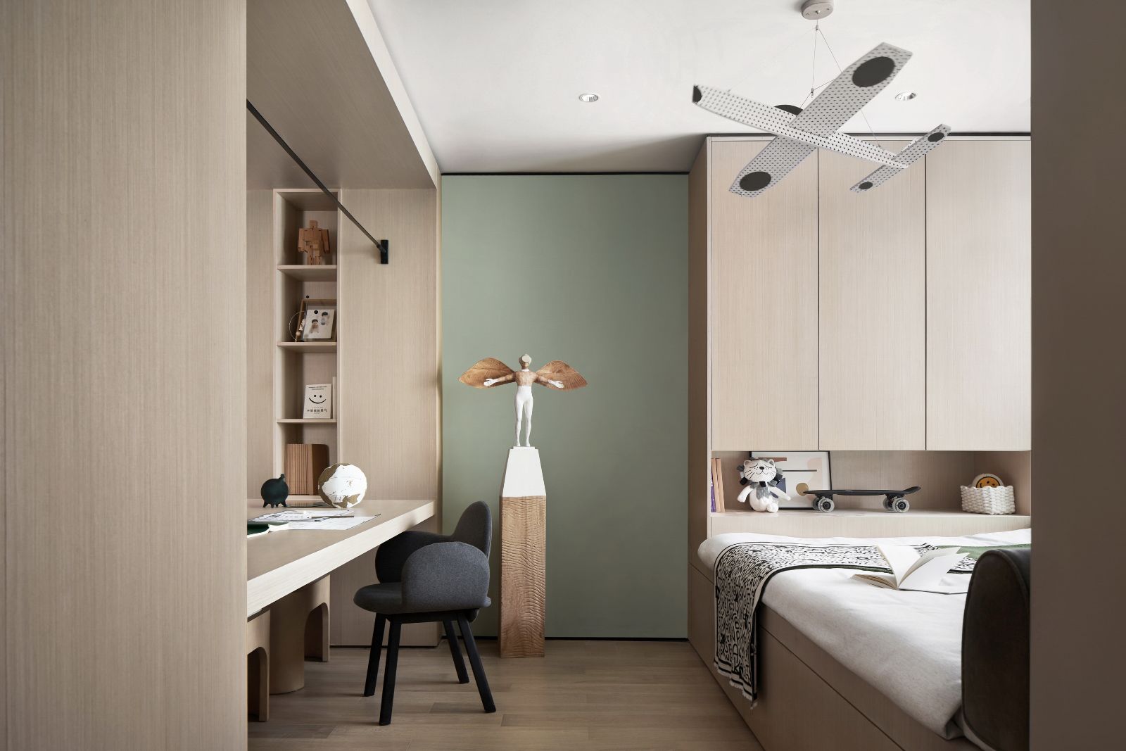 空间改造:对于该户型的变化主要集中在南向主、次卧及北向书房。其实在原本户型中,客厅空间已经预留了一定的办公空间,北向书房与主卧隔墙可以打通作为单独衣帽间使用,想保留阅读功能的话也可以进行改造,作为开放式阅读空间,未来也可以重新打造为儿童房、老人房等等。样板间也做了改造设计。