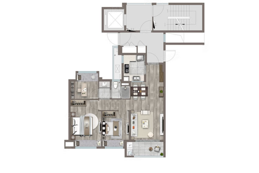 设计升级之后,对室内空间的利用更为充分,原本需要大面积户型才能满足的居住需求,现在可以浓缩到相对较小平米户型之中。
