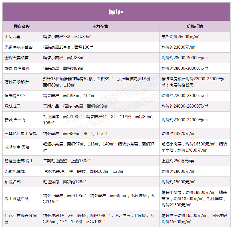 对此,小编将锡城在售楼盘滤了一遍,有类似需求的小伙伴不妨来看一看。