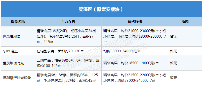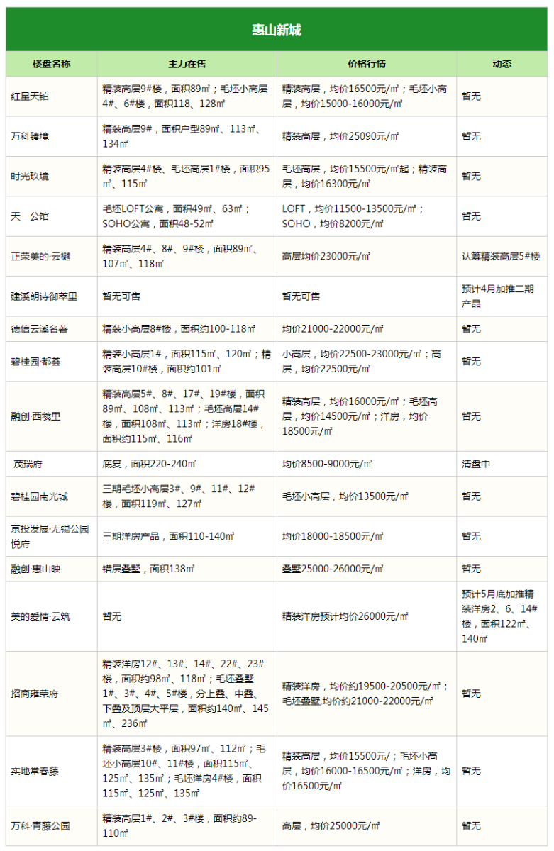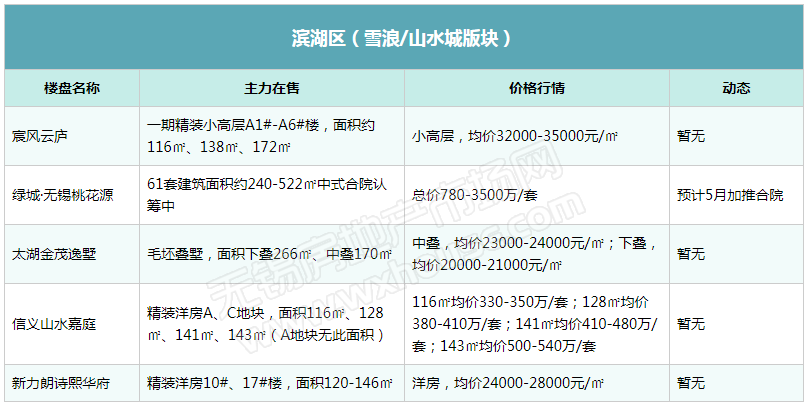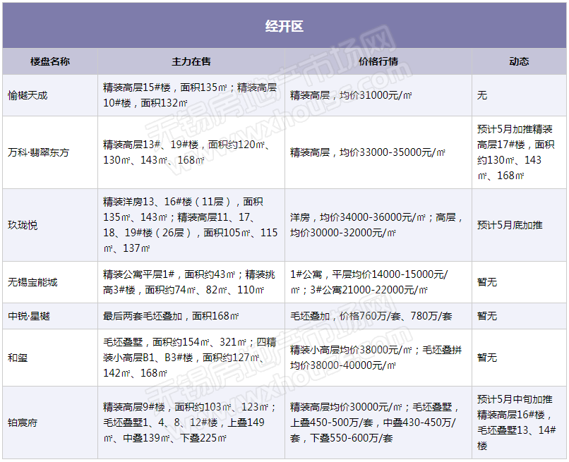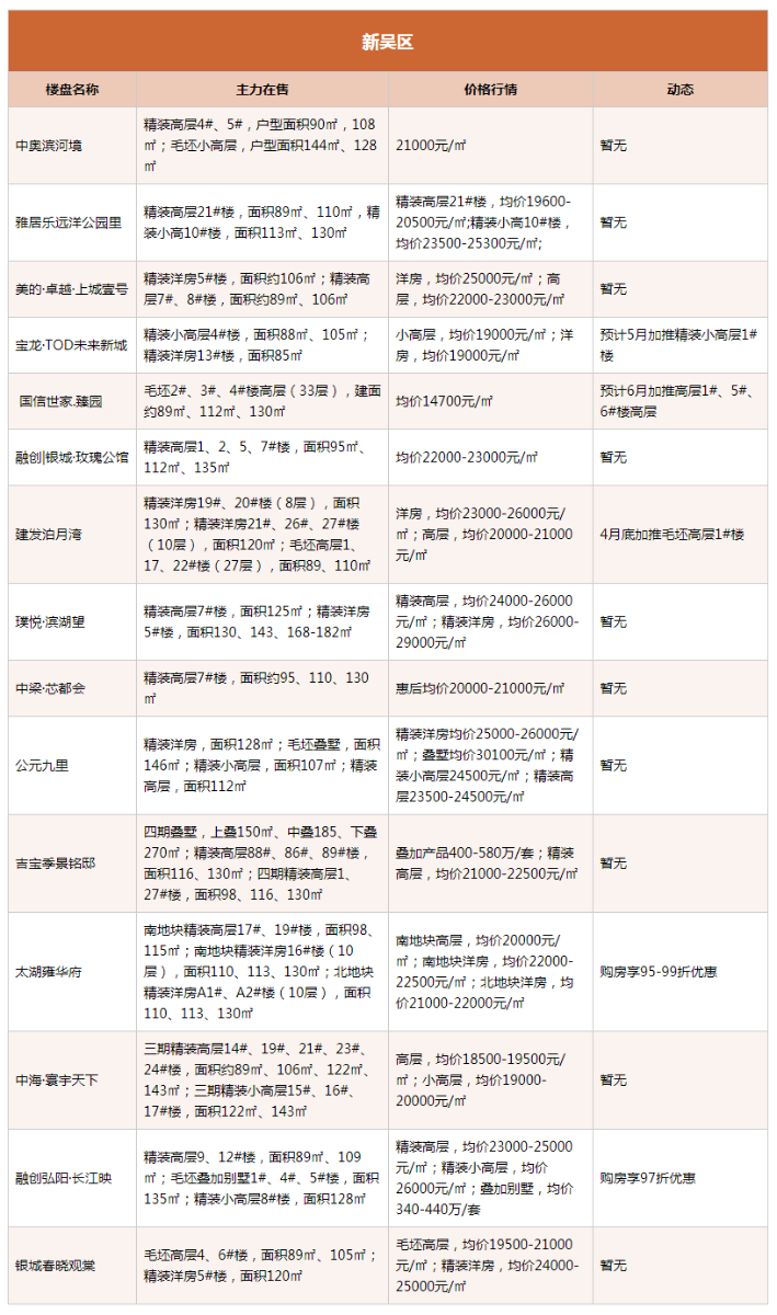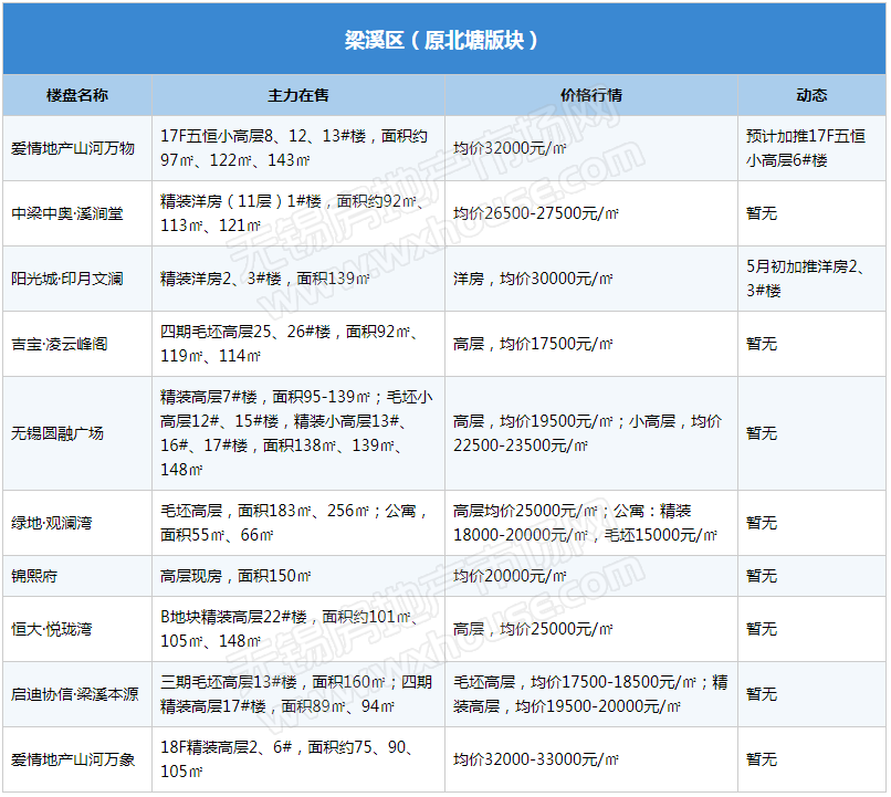 5月锡城主流在售项目及产品最新情报呈上。4月末的集中土拍也给楼市添了把火,51小长假中各大售楼处“捷报”频传,不少项目表示5月有加推计划,补充在售房源,如万科·翡翠东方、玖珑悦、铂宸府、熙悦滨湖湾、爱情地产山河万物等等,看看你关注的楼盘加推了没。(注:下表整理内容为锡城主流楼盘、主流物业,均为售楼处报价)