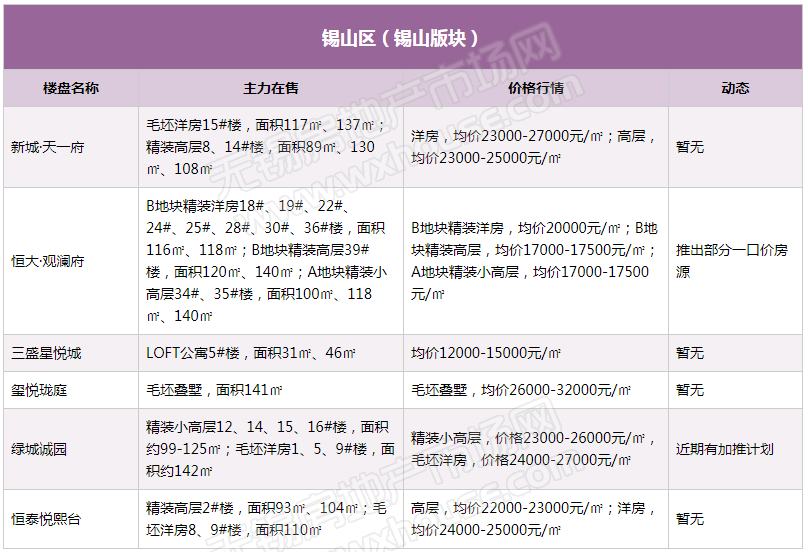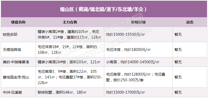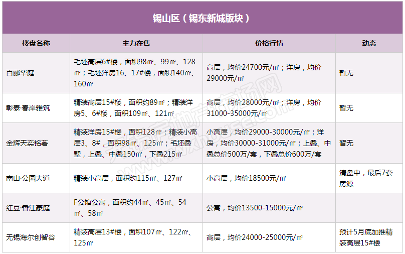 5月锡城主流在售楼盘最新报价及最全在售信息