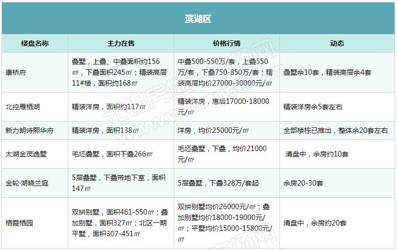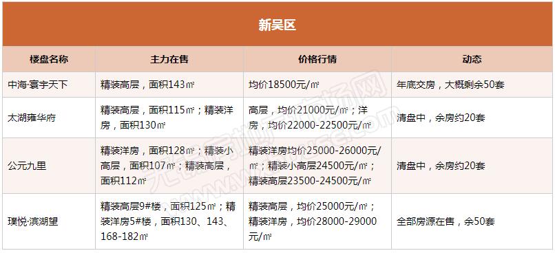 滨湖区:河埒口板块、胡埭板块、雪浪板块、山水城板块、马山板块、渔港路板块均有准收官盘;