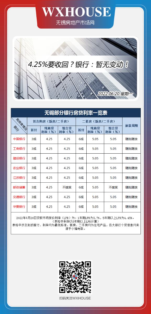 4.25%要收回?银行:无锡个贷利率暂无变动!