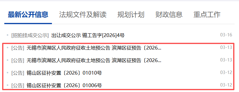 近期,无锡自然资源和规划局发布最新征收公告,含滨湖、锡山。