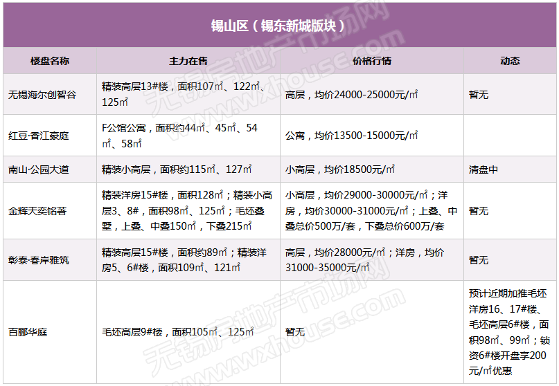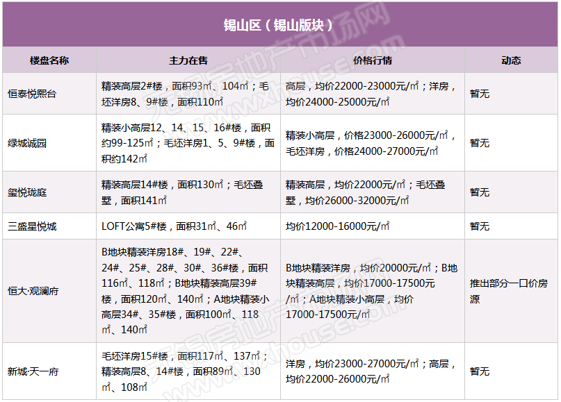 4月锡城主流在售楼盘最新报价及最全在售信息