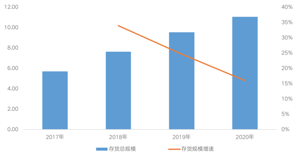 存货总量及存货同比增速(单位:万亿元)