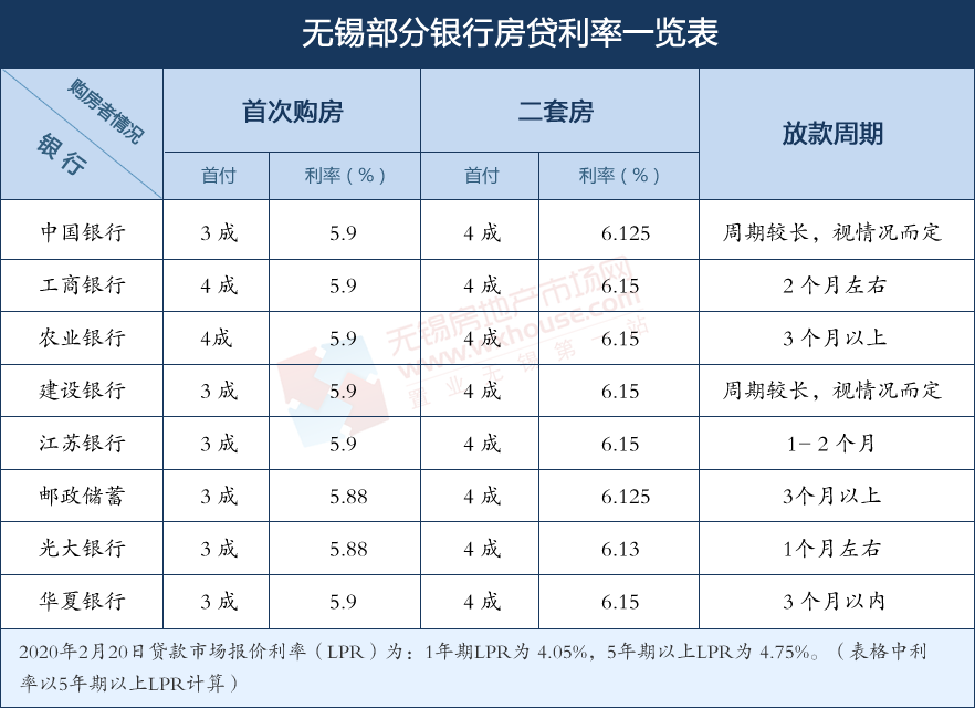 新一期贷款市场报价利率(LPR)一经发布,小编便致电锡城8家主流银行对锡城个人住房贷款进行摸底。目前锡城主流银行多个网点已经复工,从小编致电的8家银行反馈情况来看,目前无锡住房个贷仍然稳定,与上一期执行标准几乎无变化:针对首次购房,除了邮政储蓄和光大银行利率按照5.88%执行,其余6家银行,其利率均按照5.9%执行;针对二套房,大部分银行其利率按照6.15%执行(利率以5年期以上LPR计算)。