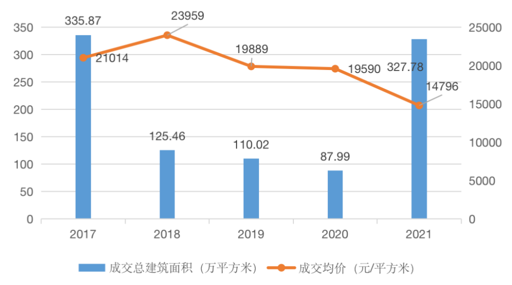 图:重点8城2017年7月-2021年10月自持用地年度成交走势