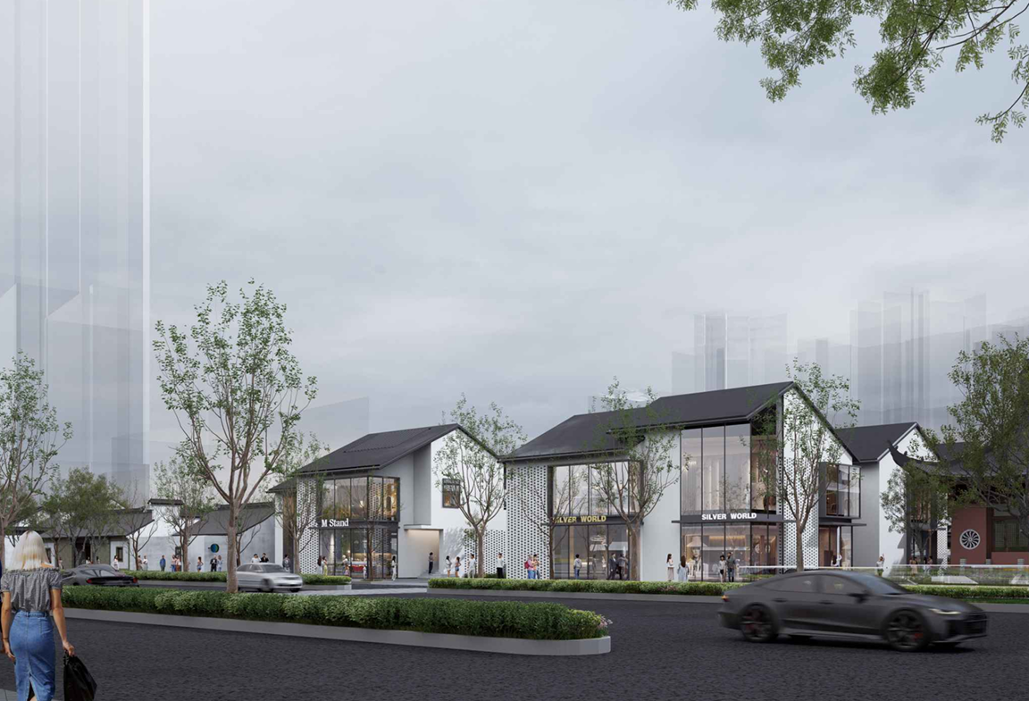 从公示的效果图来看,项目外立面采用大面积玻璃,搭配暖白色铝板、香槟金色铝板和香槟金色陶板,线条简洁流畅,彰显出高品质社区的现代大气风格。