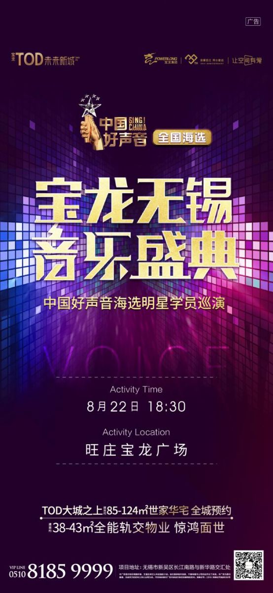 8月22日|中国好声音海选明星学员巡演登录宝龙广场!