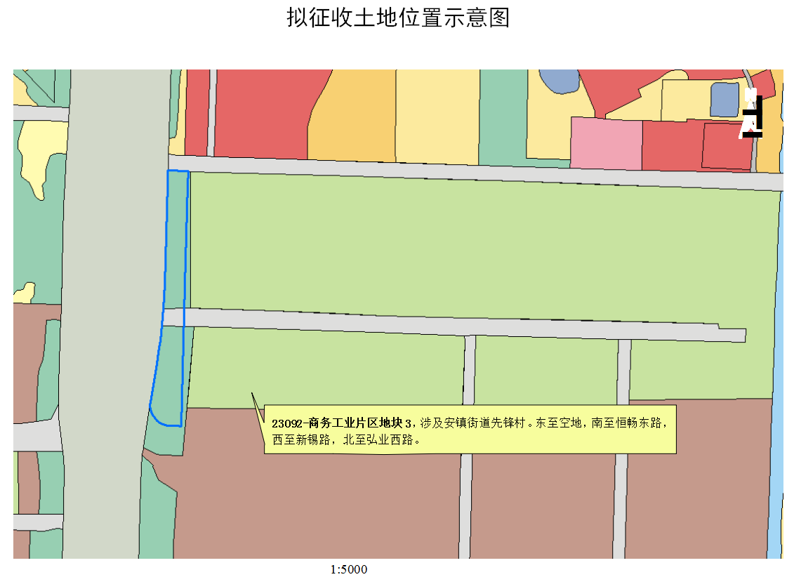 本次拟征收土地位于锡山区安镇街道先锋村集体范围内,拟征收集体所有土地3.9296公顷(58.944亩)。其中,农用地0.1608公顷(2.412亩),含耕地0公顷(0亩);建设用地3.7688公顷(56.532亩);未利用地0公顷(0亩)。