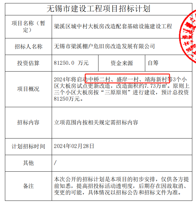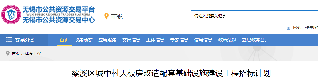 无锡市公共资源交易平台发布了梁溪区城中村大板房改造相关项目。