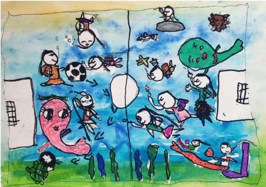 这些来自金科华东的孩子们,用画笔描绘出他们眼中江豚的故事。在一笔笔稚嫩的勾画,一幅幅青涩的画作中,可爱的孩子们早已把江豚当成了他们不可分割的伙伴以及家人。