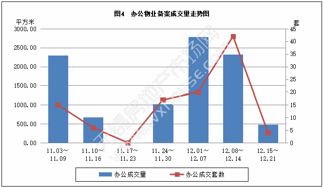 本周办公物业备案成交量和套数分析