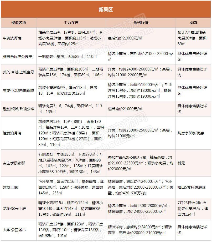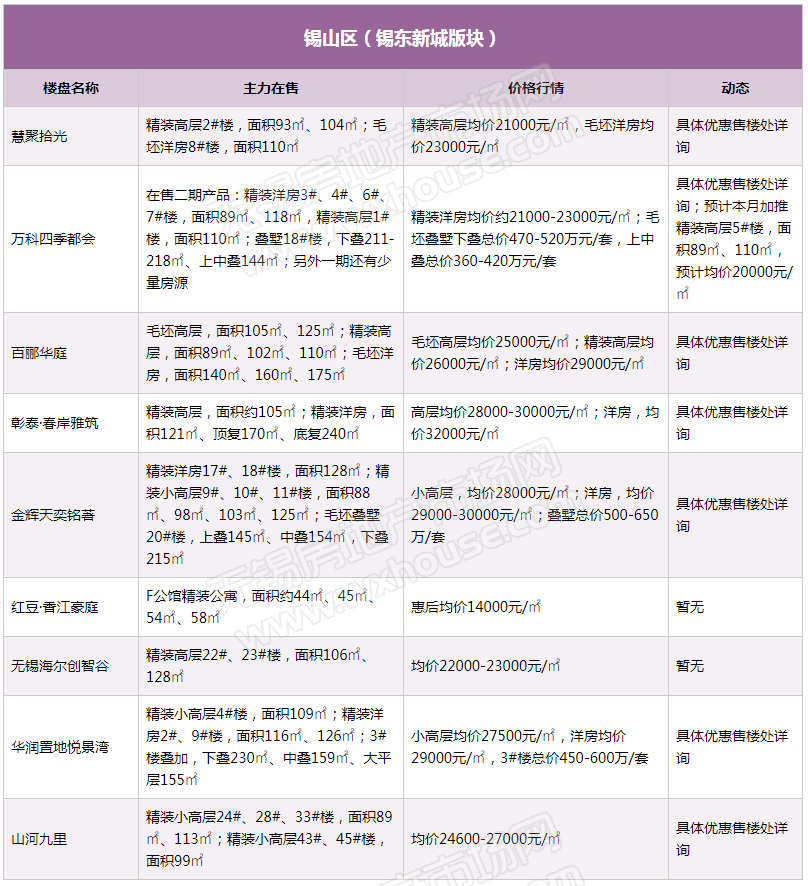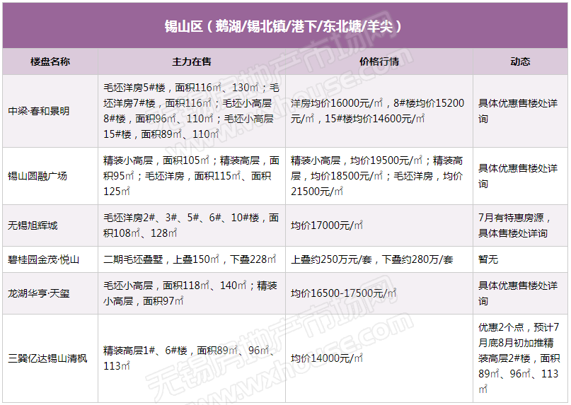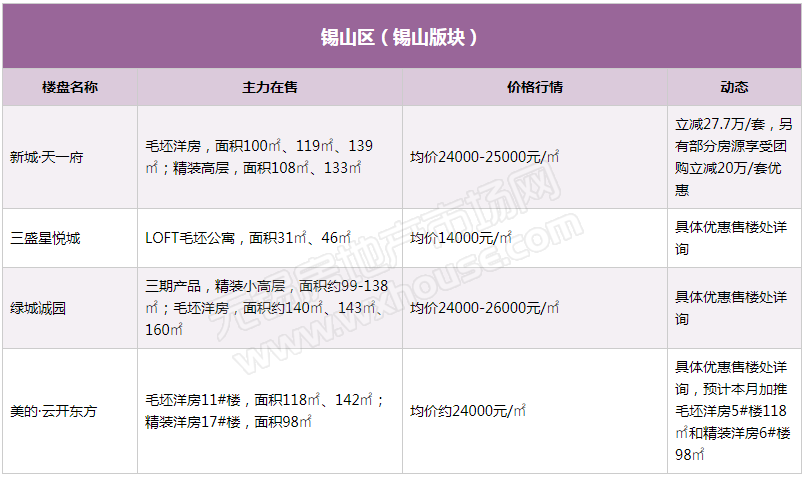 7月锡城主流在售楼盘最新报价及最全在售信息